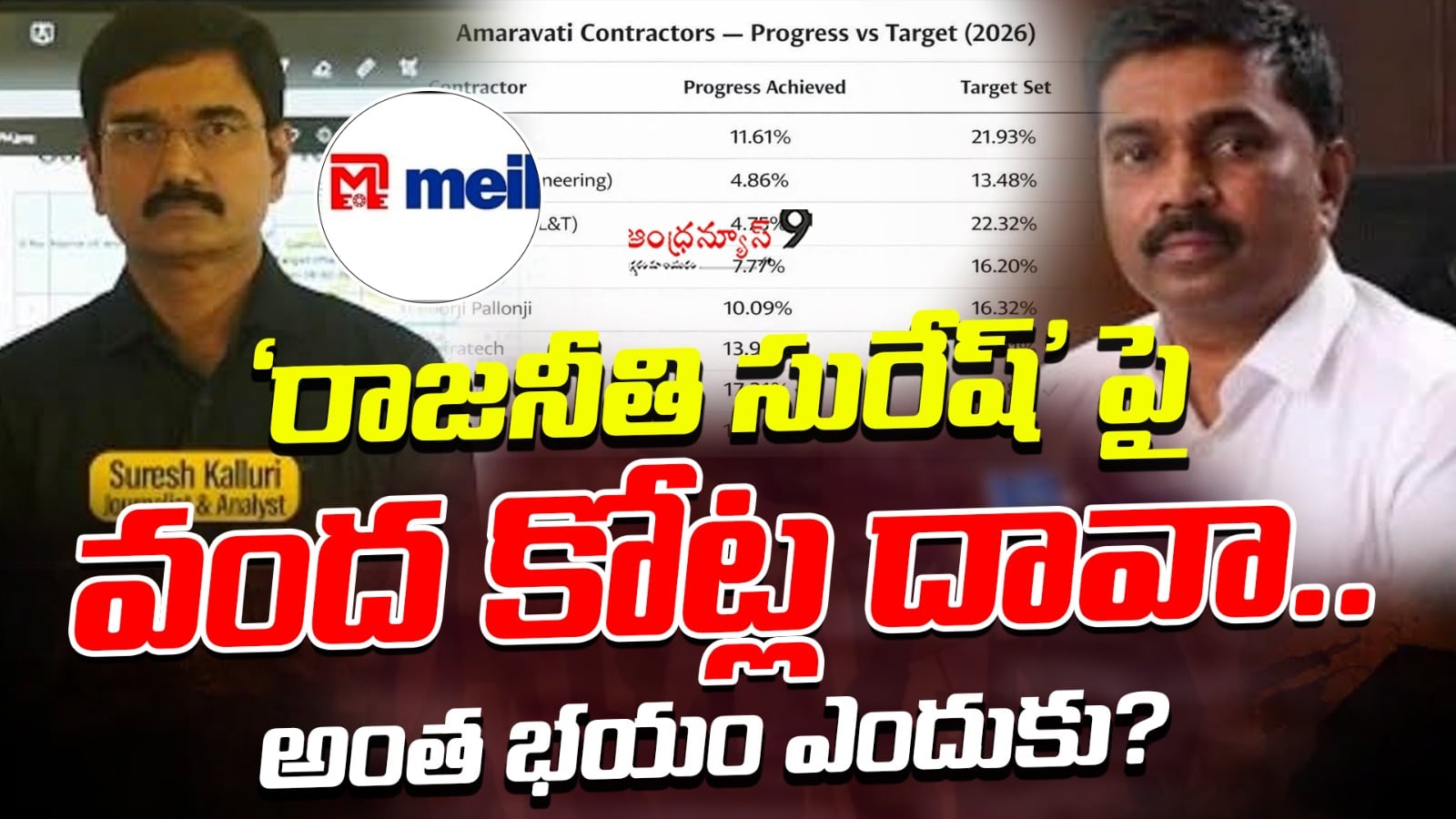 రాజనీతి అనే యూ ట్యూబ్ ఛానల్ నిర్వహిస్తున్ కల్లూరి సురేష్ అనే సీనియర్ పాత్రికేయులు కూడా ఇదే లెక్కల ఆధారంగానే వీడియో చేశారు. సీఆర్డీఏ డాష్ బోర్డు ఆధారంగా ఫిబ్రవరి 7, 14, 28వ తేదీ నాటికి ఎంత పని జరిగింది.. ఏ సంస్థ తన టార్గెట్ రీచ్ అయ్యింది అని వివరించారు. అమరావతిలో మెజారిటీ పనులు దక్కించుకున్న సంస్థ మేఘా. సుమారు 20 శాతం పైగా పనులు ఈ సంస్థకే దక్కాయనేది అధికారిక సమాచారం. ఆ పనుల పురోగతి ఎలా ఉంది అనేది ప్రతి వారం సీఆర్డీఏ అధికారులు వెబ్ సైట్లో అప్లోడ్ చేస్తారు. ఆ డేటా ఆధారంగానే కల్లూరి సురేష్ వీడియో చేశారు. పనులు దక్కించుకున్న మేఘా సంస్థ ఫిబ్రవరి 14వ తేదీ నాటికి 10.72 శాతం పనులు చేయాల్సి ఉండగా.. కేవలం 3.64 శాతం మాత్రమే చేసినట్లు డాష్ బోర్డులో అధికారులు నమోదు చేశారు. ఫిబ్రవరి 28వ తేదీ నాటికి 13.48 శాతం పనులు పూర్తి చేయాల్సి ఉండగా.. కేవలం 4.86 శాతం మాత్రమే పూర్తి చేసినట్లు సీఆర్డీఏ డాష్ బోర్డులో నమోదైన విషయాలను సురేష్ ప్రస్తావించారు. నిజానికి మేఘా మాత్రమే కాదు.. ఎన్సీసీ, ఎల్ అండ్ టీ, ఆర్వీఆర్, ఎంవీఆర్, కేఎంవీ వంటి సంస్థలు కూడా టార్గెట్ రీచ్ కాలేదు. ఎల్ అండ్ టీ సంస్థ అయితే 22.32 శాతం పనులు చేయాల్సి ఉండగా… కేవలం 4.75 శాతం మాత్రమే పూర్తి చేసినట్లు సీఆర్డీఏ లెక్కలు చెబుతున్నాయి.
