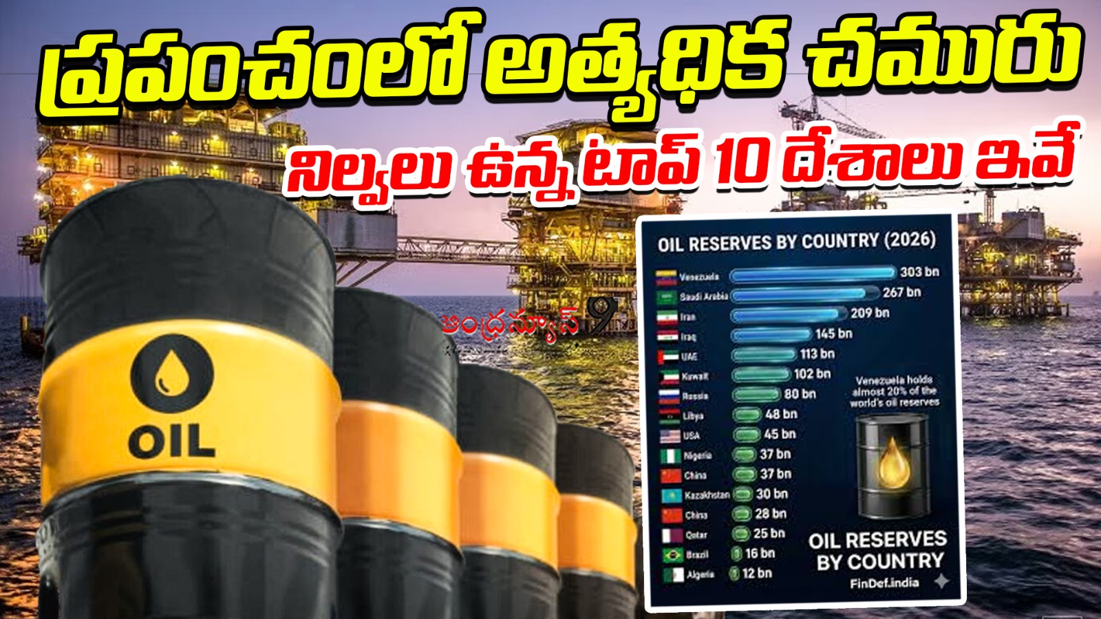ప్రపంచవ్యాప్తంగా అత్యధికంగా ముడి చమురు నిల్వలు ఉన్న దేశాల జాబితాలో వెనిజులా అగ్రస్థానంలో ఉంది. ఆ దేశంలో సుమారు 303,221 మిలియన్ బ్యారెళ్ల చమురు నిల్వలు ఉన్నాయని అంతర్జాతీయ అంచనాలు చెబుతున్నాయి. అయితే రాజకీయ అస్థిరత, ఆర్థిక సంక్షోభం, అమెరికా విధించిన ఆంక్షల కారణంగా ఆ దేశం తన పూర్తి సామర్థ్యంతో ఉత్పత్తి చేయలేకపోతుంది. దాంతో అంత భారీ నిల్వలు ఉన్నప్పటికీ ప్రపంచ మార్కెట్పై వెనిజులా ప్రభావం పరిమితంగానే ఉంది.
