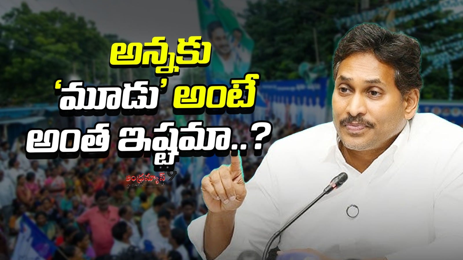 అన్నకు మూడు అంటే అంత ఇష్టమా.. ఇప్పుడు ఇదే ప్రశ్న వైఎస్ఆర్ కాంగ్రెస్ పార్టీ నేతలతో పాటు పొలిటికల్ సర్కిల్లో బాగా వినిపిస్తోంది. ఇంతకు అన్న ఎవరూ అనే కదా అనుమానం.. ఎవరో కాదు.. వైసీపీ నేతలంతా ముద్దుగా అన్న పిలుచుకునేది ఆ పార్టీ అధినేత, మాజీ ముఖ్యమంత్రి వైఎస్ జగన్ మోహన్ రెడ్డి. నెలకో సారి మీడియా ముందుకు వస్తారు.. వచ్చినప్పుడు మీమర్స్కు మంచి ఫుటేజ్ ఇచ్చి వెళ్తారు. తాజాగా ఆంధ్రప్రదేశ్ రాజధాని అంశంపై ప్రెస్మీట్ పెట్టారు.. ఇంకా చెప్పాలంటే.. ప్రెస్ ముందుకు వచ్చారు.. తప్ప.. మీడియా మిత్రులు ప్రశ్నలు అడిగే అవకాశం ఇవ్వలేదు.